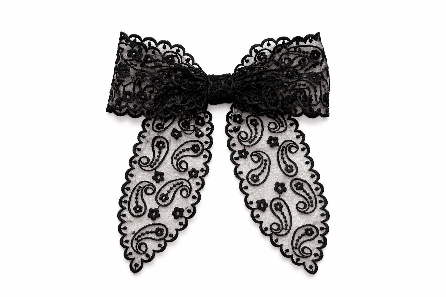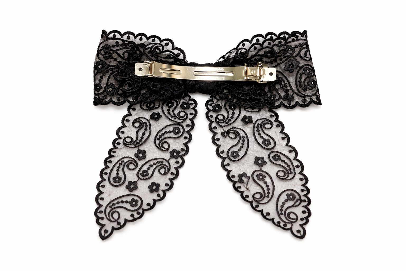 Preciosa traba de estructura francesa de amplio agarre de 10 cms. de largo y aplicación de cinta organza.